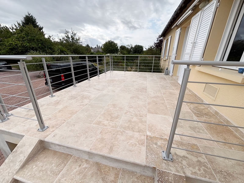 La sécurité de vos espaces extérieurs est essentielle. J’installe des garde-corps en inox pour terrasses, balcons et escaliers. Le rendu est à la fois discret et moderne, avec des câbles horizontaux qui laissent passer le regard tout en respectant les normes de hauteur et de résistance.